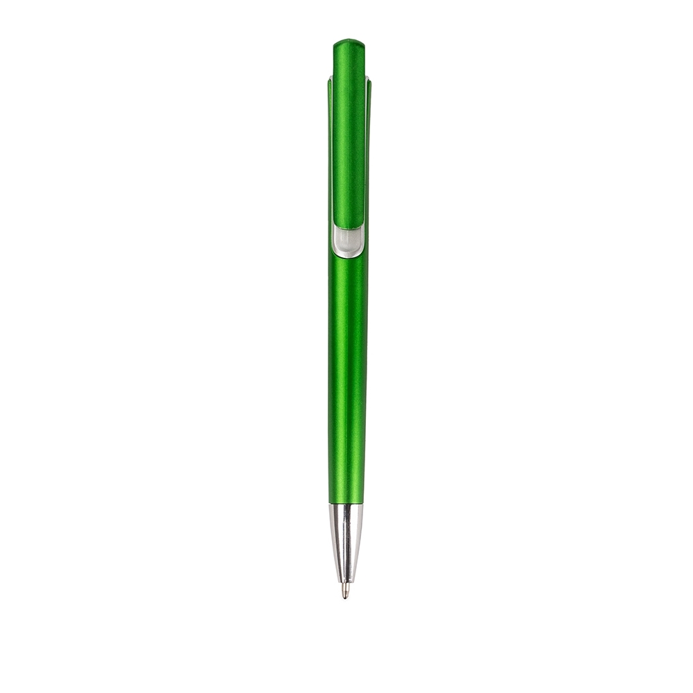 Caneta plástica com ponta metálica, acionamento por clique e abertura que funciona como suporte de celular. Possui ponteira com revestimento em feltro para limpeza de telas e carga esferográfica azul de 1.0mm.