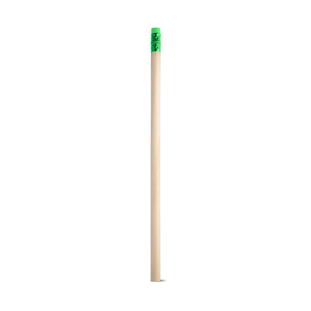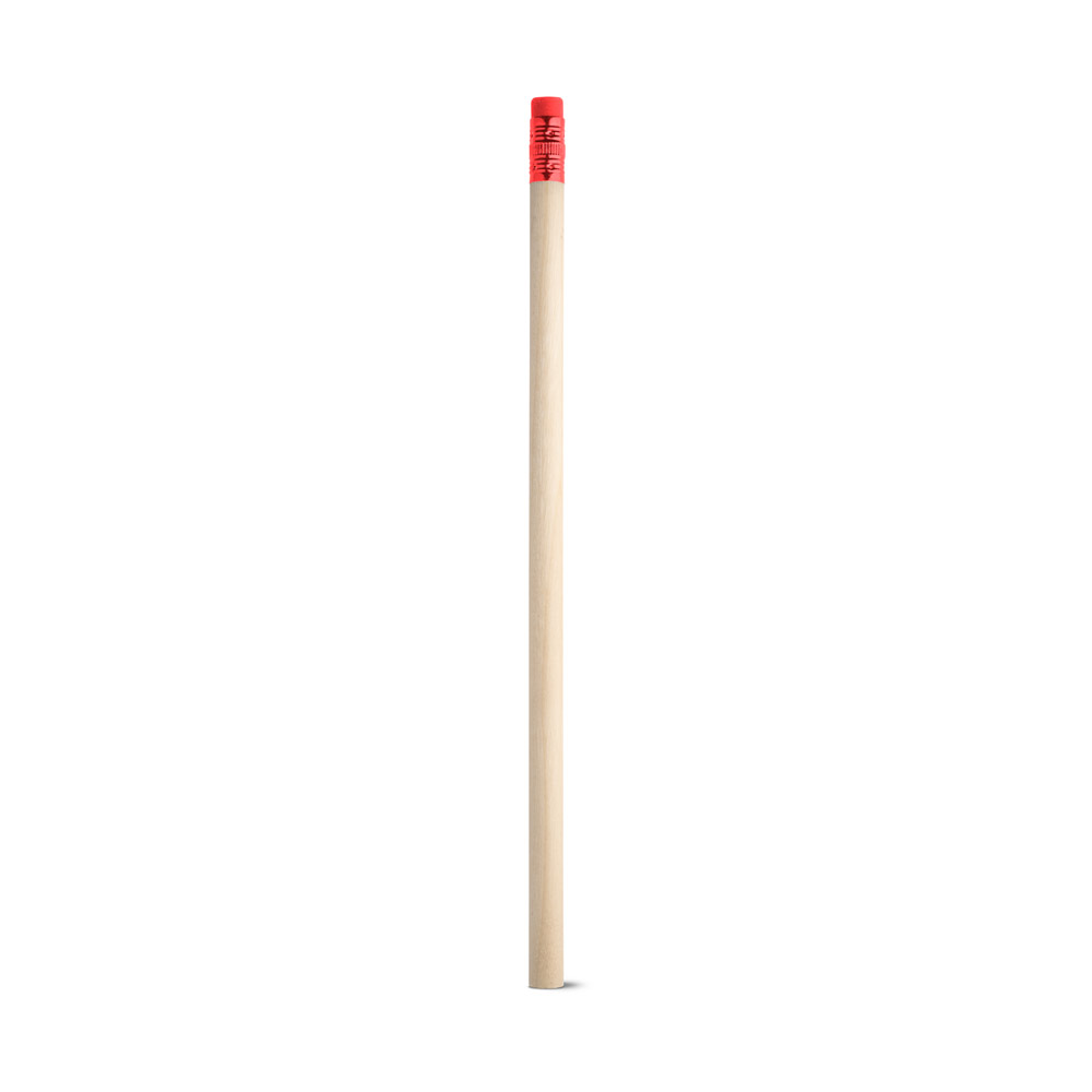 Lápis em madeira natural com borracha no topo. Grau de dureza: HB.
