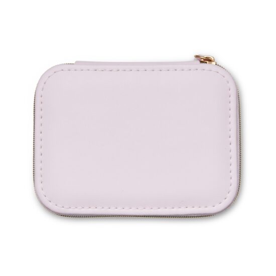 Porta-joias de couro sintético com dois compartimentos de revestimento aveludado.